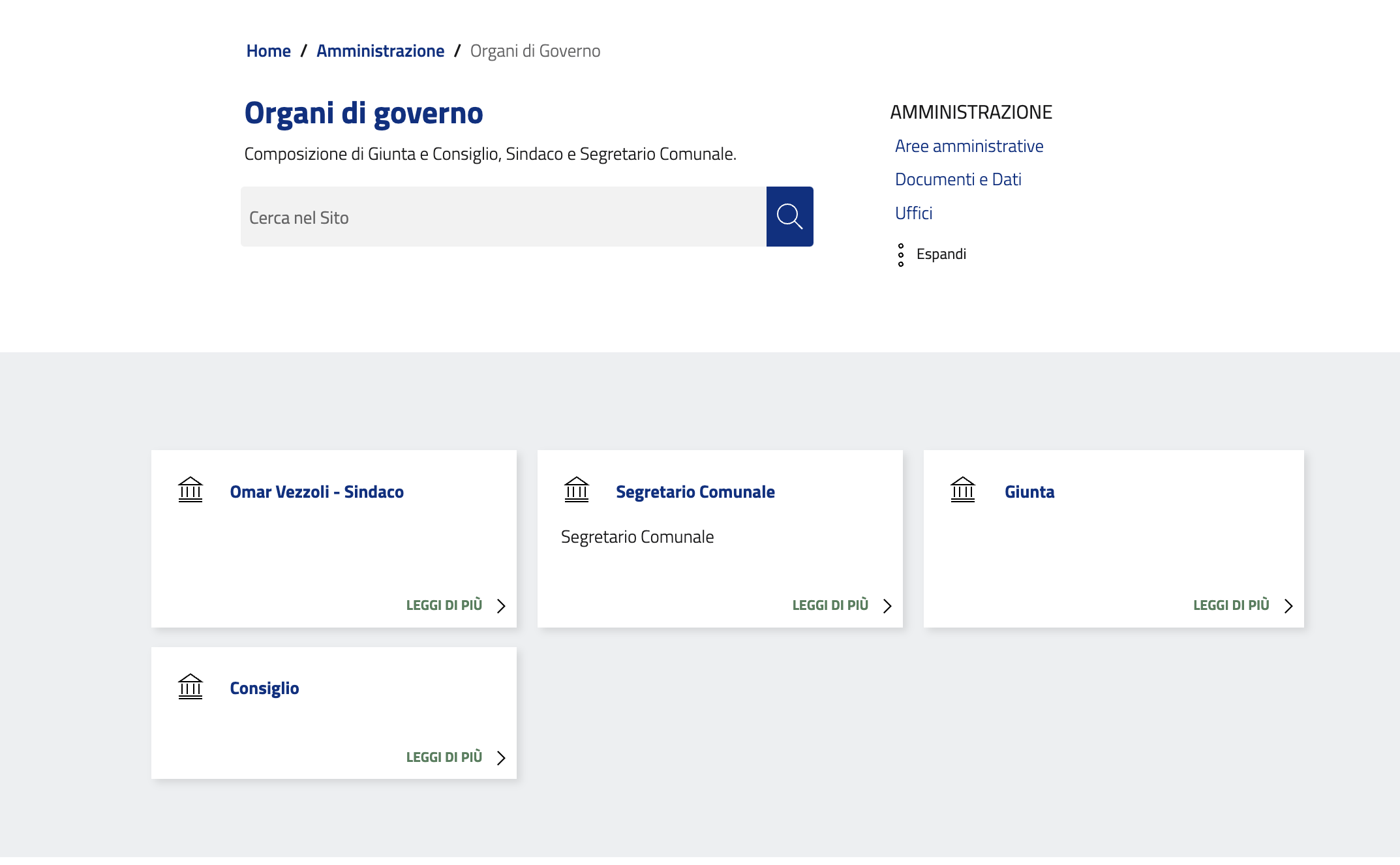 In questa sezione è possibile trovare il dettaglio delle formazioni degli organi di governo, ovvero il Sindaco, la Giunta Comunale, il Consiglio Comunale e il Segretario Comunale.