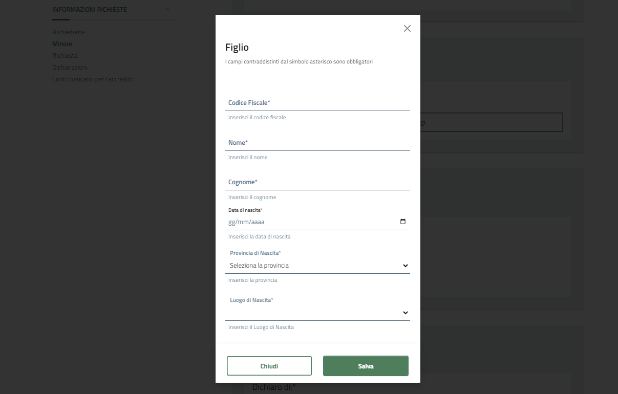 In questo caso il popolamento del box è disattivo perché trattandosi di un nuovo nascituro difficilmente potrà già essere stato censito in anagrafica nelle Impostazioni