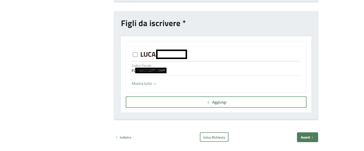 Selezionare i Figli da iscrivere al servizio.