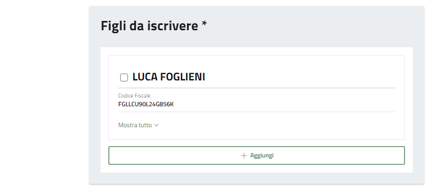 Dopodichè sarà sufficiente flaggare il nome del o dei figli da iscrivere.